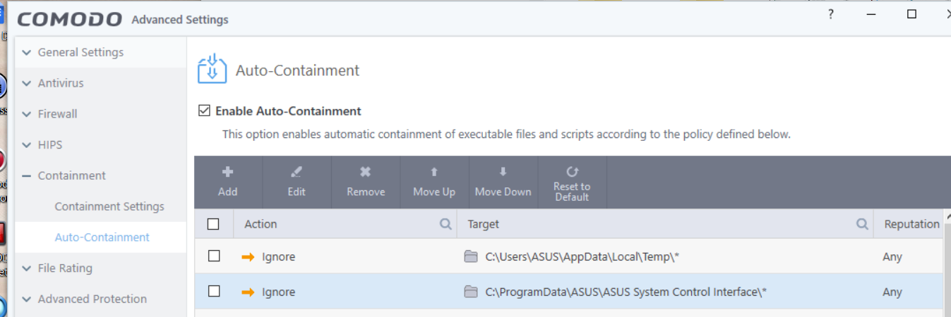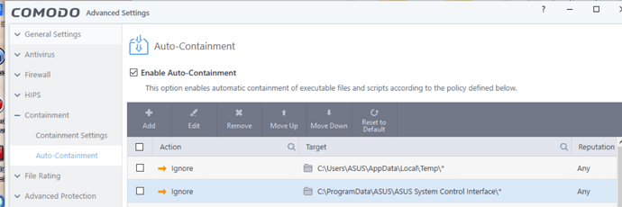 futuretech Thanks for earlier advice, unfortunately nothing seems to work. I have created auto-containment rules to ignore pretty much all the ASUS .exe’s and all applications signed by ASUS companies but nothing seems to work. I now believe that these are not ASUS scripts at all.