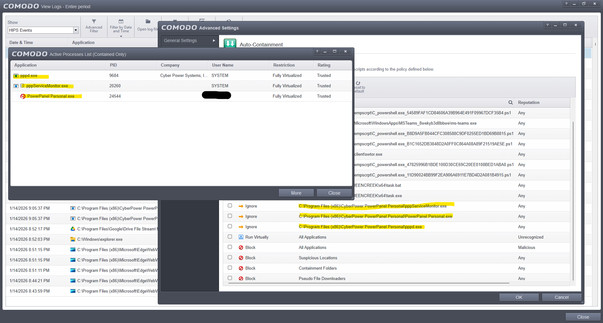 Anyway, CIS/CFW is protecting itself and if the applications are still working, it’s not interfering with those, I wouldn’t worry. It may be that one day they’ll include the option to exclude entries from the logs but we’ll see what CIS 2026 brings when it comes out.