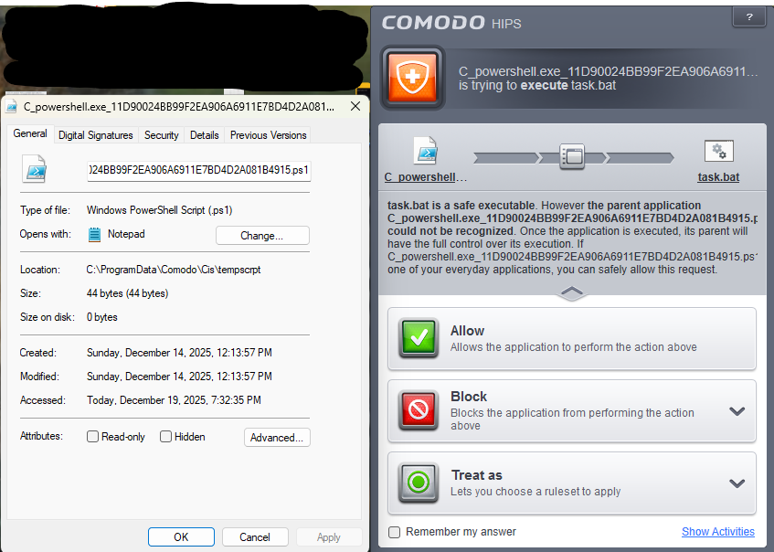 But while sandboxing them, we create a file out of them i.e. convert file-less scripts into files in C:\ProgramData\Comodo\Cis\tempscrpt. If is the command-line interpreter. What you can do is