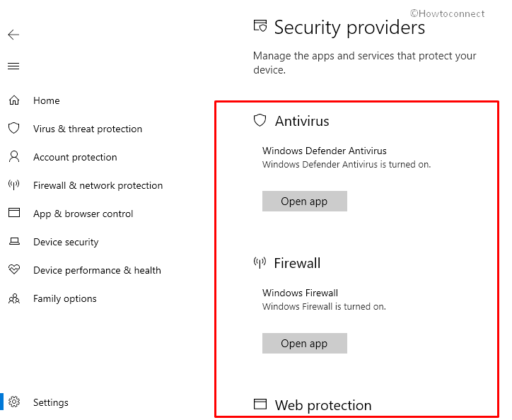 [ol]- Open Windows Security Center → click “Settings” in the left-low corner → click “Manage providers” under “Security providers”