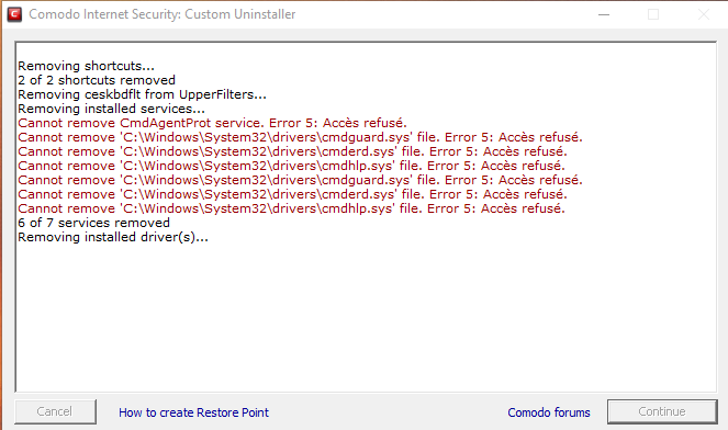 Cannot remove CmdAgentProt service. Error 5: Accès refusÊ.