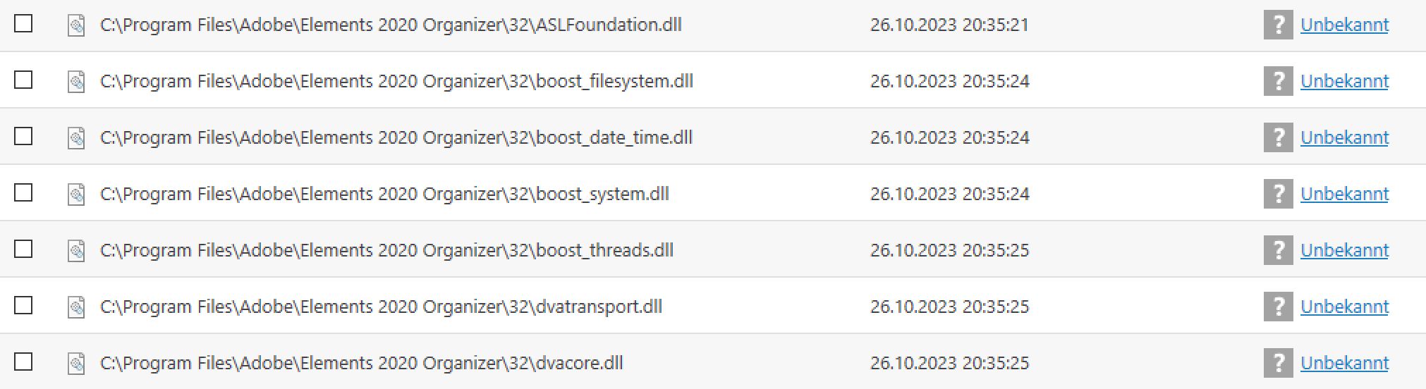 But many files of Adobe is set to unknown, too: