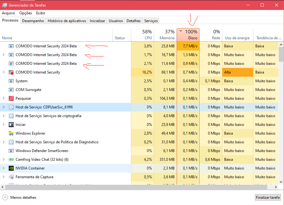 It may be either elsewhere (like Comodo’s perfs being bad) or windows badly reporting metrics.