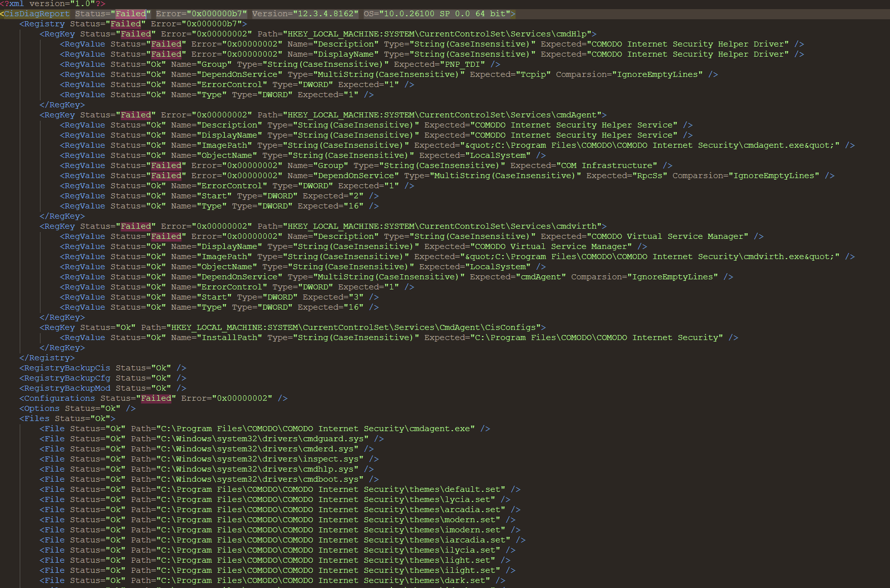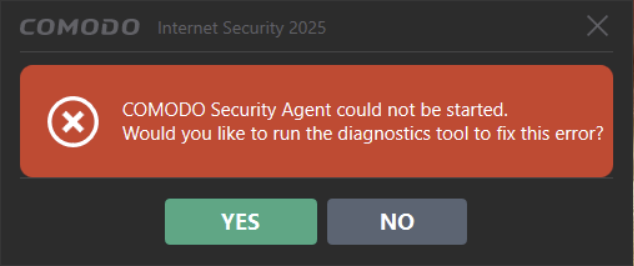 After a few minutes an error message would appear saying that the comodo agent could not be loaded and ask to run diagnostics to fix the problem. Doing so would eventually fail and generate an error report.