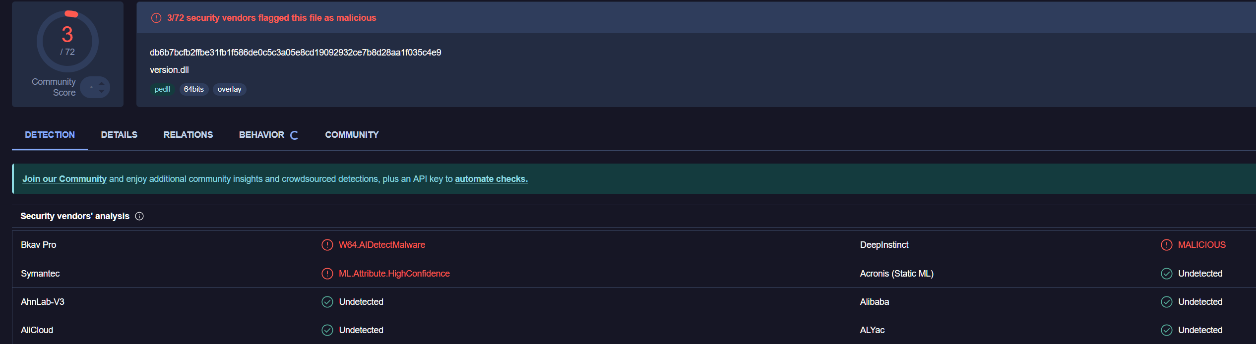 - DLL detected by xcitium on VT, both on 11 months ago test on VT and current 4 days ago