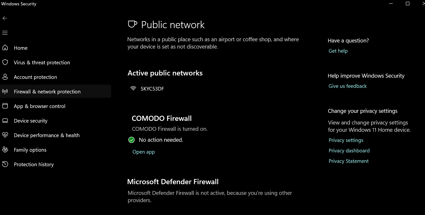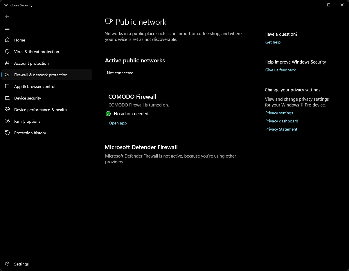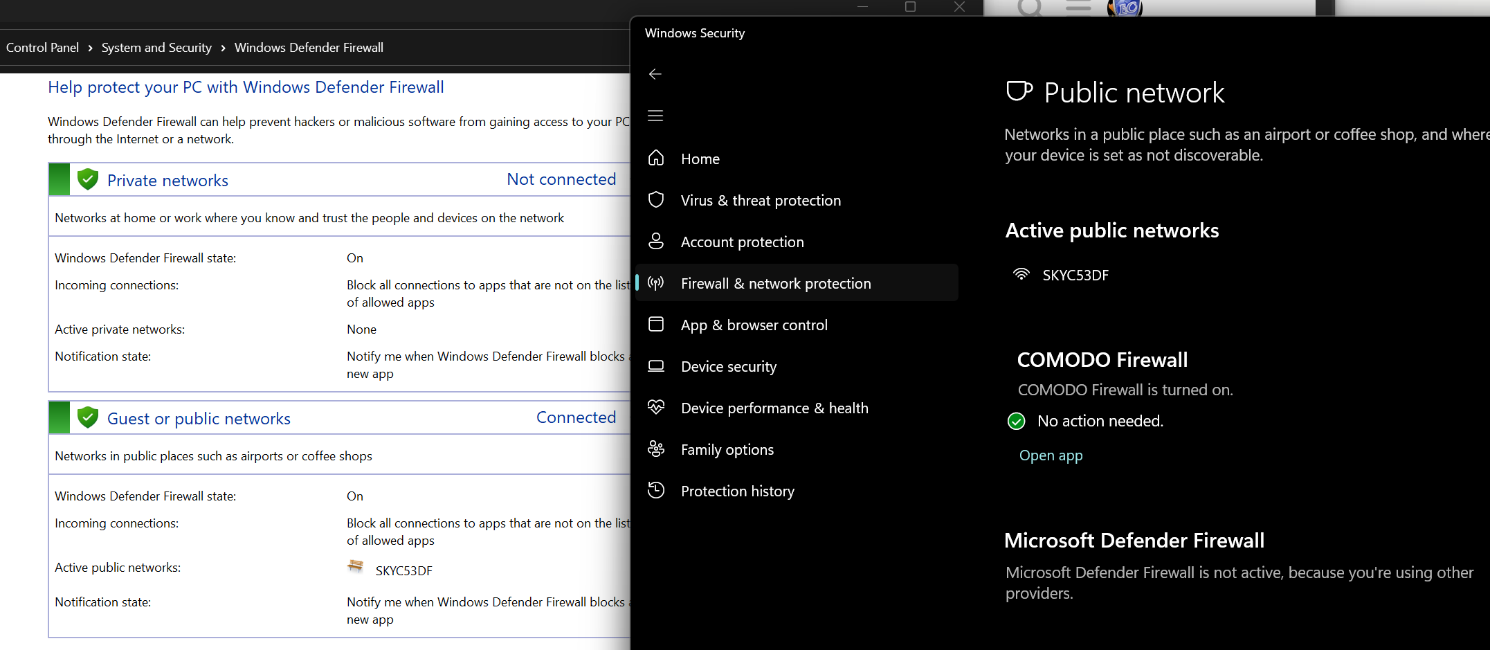 That can’t be right because I can’t use ANY of the Windows Firewall controls and it also says “Comodo Firewall is turned on” all over the Windows Firewall section. Anything I want to do is disabled and it only allows me to open the app in control which is Comodo.