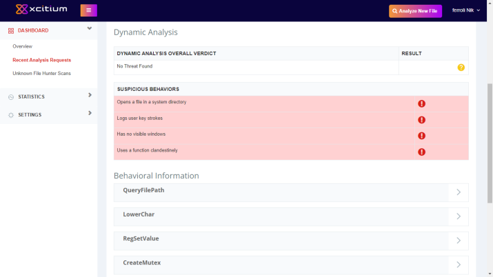 CAMAS Suspicious by Dynamic Behavioral Analysis(VirusScope)