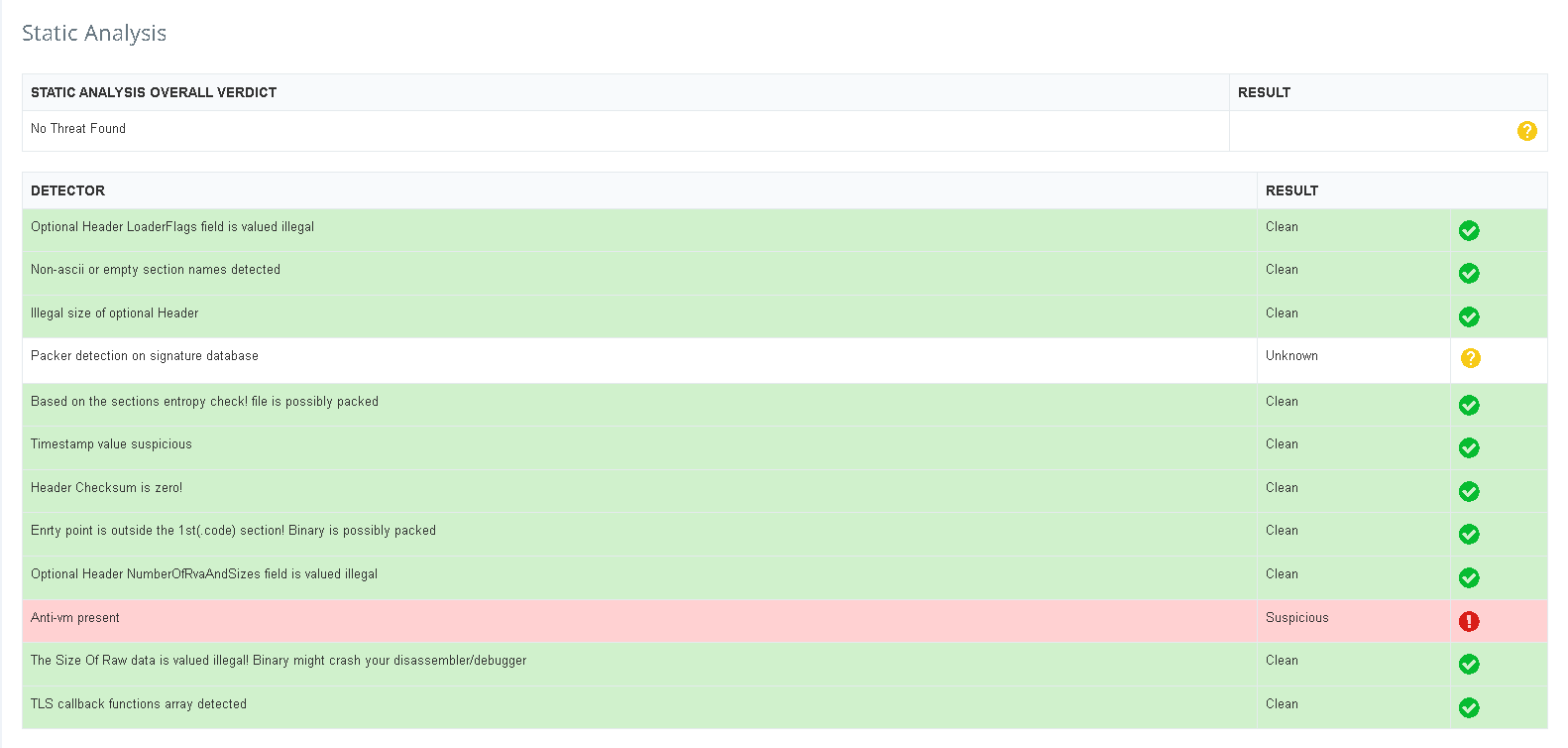 Static Analysis Tab: